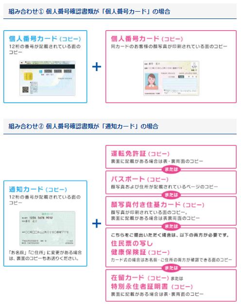 個人番号確認書類および本人確認書類の組み合せを教えてください