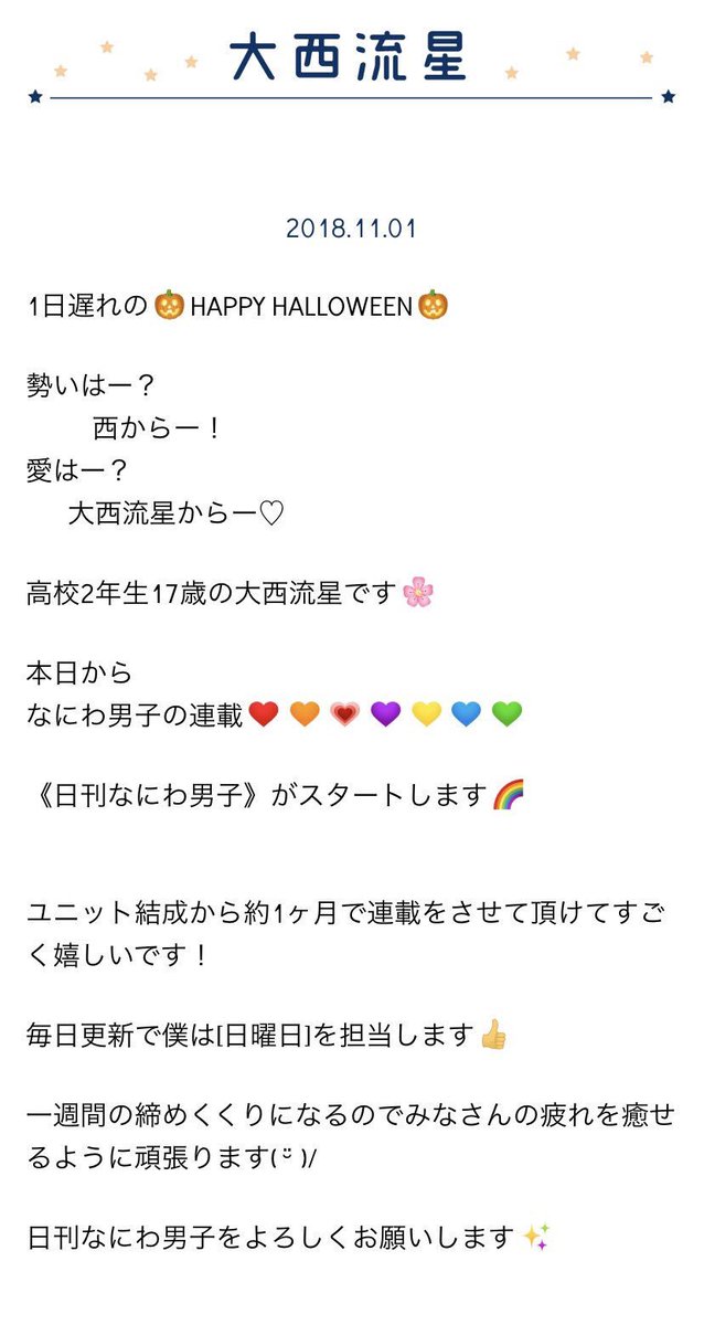 ナ on Twitter: "ㅤ ㅤ 2018 11.1 日刊なにわ男子 大西流星 #なにわ